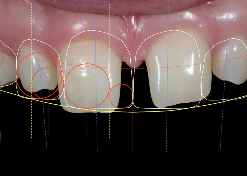 4. Behandling startes. Nøyaktig utførelse: Dette designet sendes til tannteknikeren, som lager fasettene nøyaktig slik de vises på bildet.