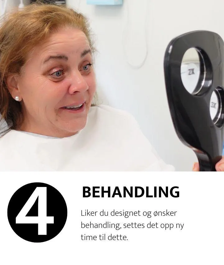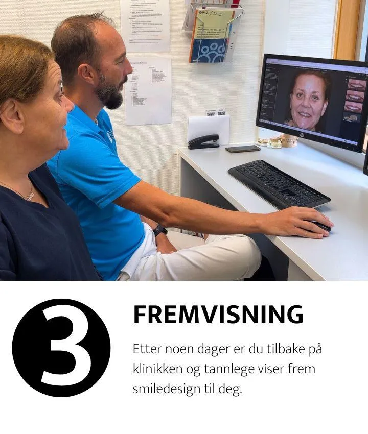 3. Ny samtale og fremvisning av smiledesign. Ikke fornøyd med det første forslaget? Vi gjør endringer til du ser drømmesmilet ditt på skjermen.